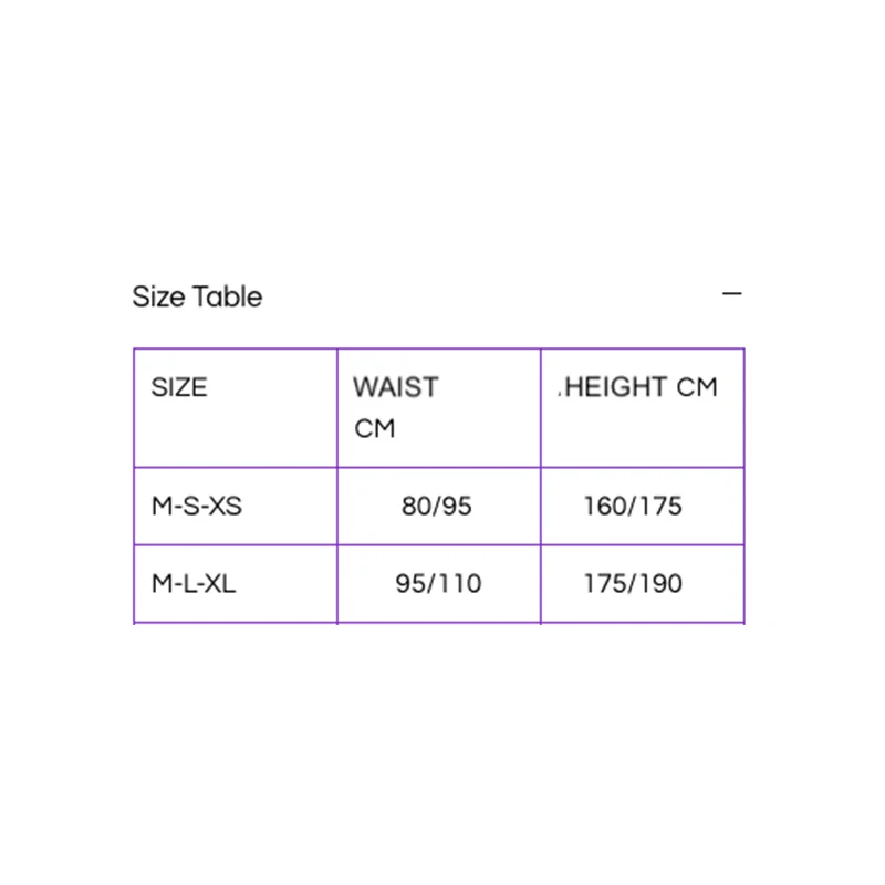 | 可選尺寸(Size) | MS-XS(腰圍 80-95cm,身高 160-175cm);ML-XL(腰圍>95cm,身高175cm上) |