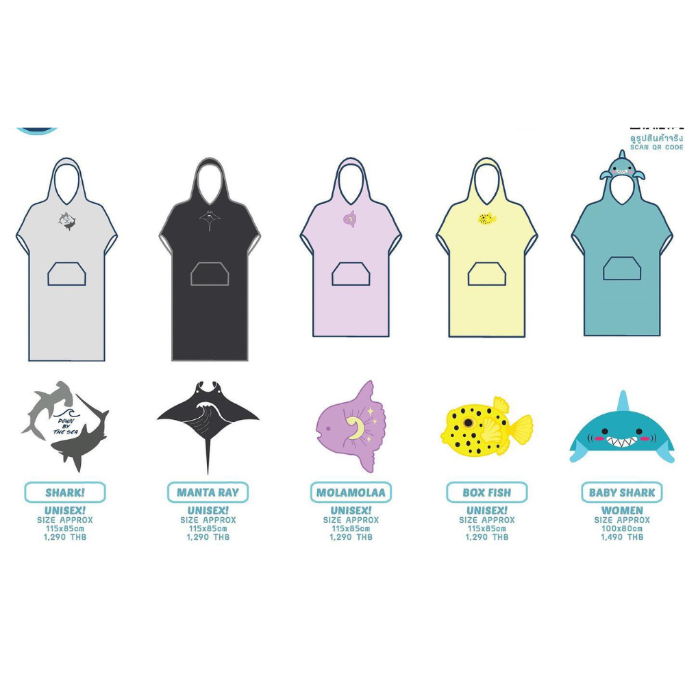 泰國直送原創設計 海洋動物剌繡連帽毛巾衣 可穿到海邊玩耍、擦拭身體,是水上活動愛好者的熱愛商品之一,也可於換衣服的時候使用😍