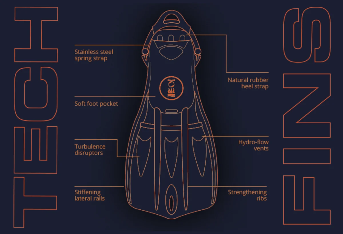 Fourth Element Tech Fin 非常適合從事技術潛水的潛水員,其高剛性葉片設計能在深度潛水及複雜水況下提供穩定可靠的推進力,配合厚款潛水靴的調節式後踢帶系統更令其成為技術潛水裝備配搭的理想之選。