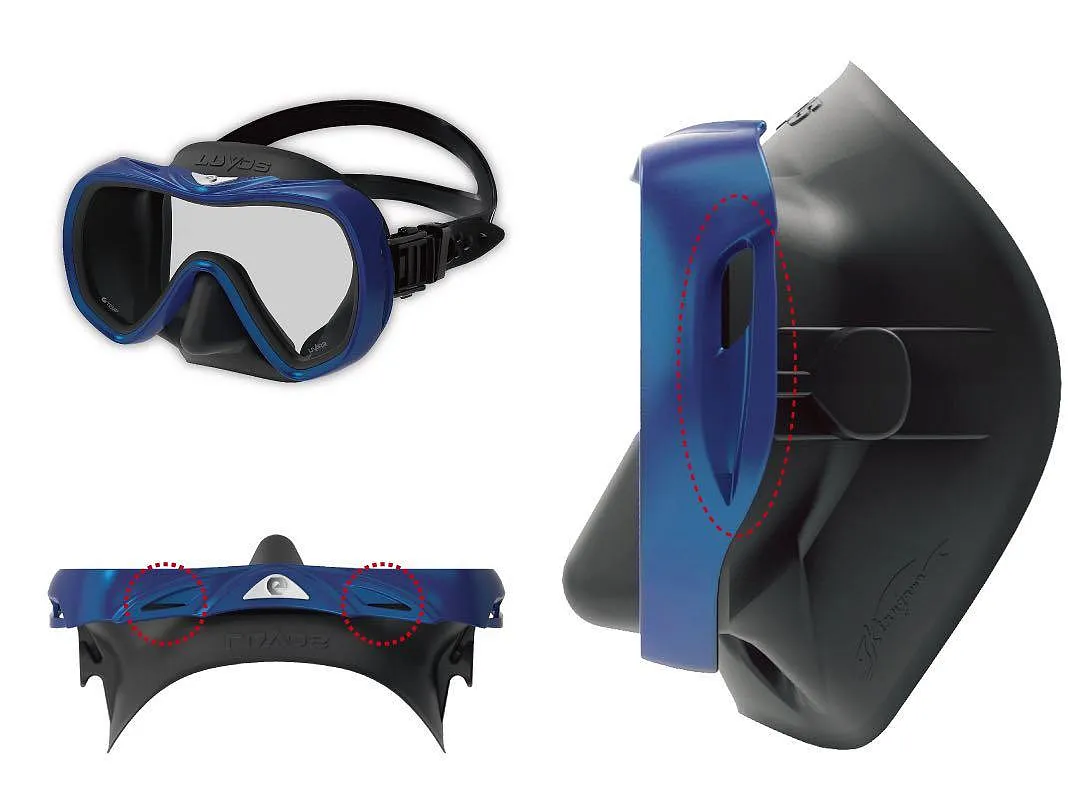 鼻袋與鏡框之間的縫隙經過優化,即使配戴厚手套亦可輕鬆捏鼻,有效協助耳壓平衡,提升整體潛水舒適度與安全性。