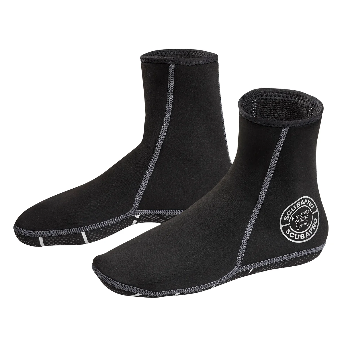 Scubapro Hybrid Sock 2.5mm 是一款採用 2.5mm 氯丁橡膠(Neoprene)製成的潛水襪,結合彈性布料與防滑耐磨底部設計,為潛水員於熱帶至溫帶水域提供輕薄舒適的保暖保護,適合搭配各類蛙鞋使用。此款潛水襪適合需要輕量保暖保護的休閒潛水員及浮潛愛好者,亦可配合全天候潛水活動使用。