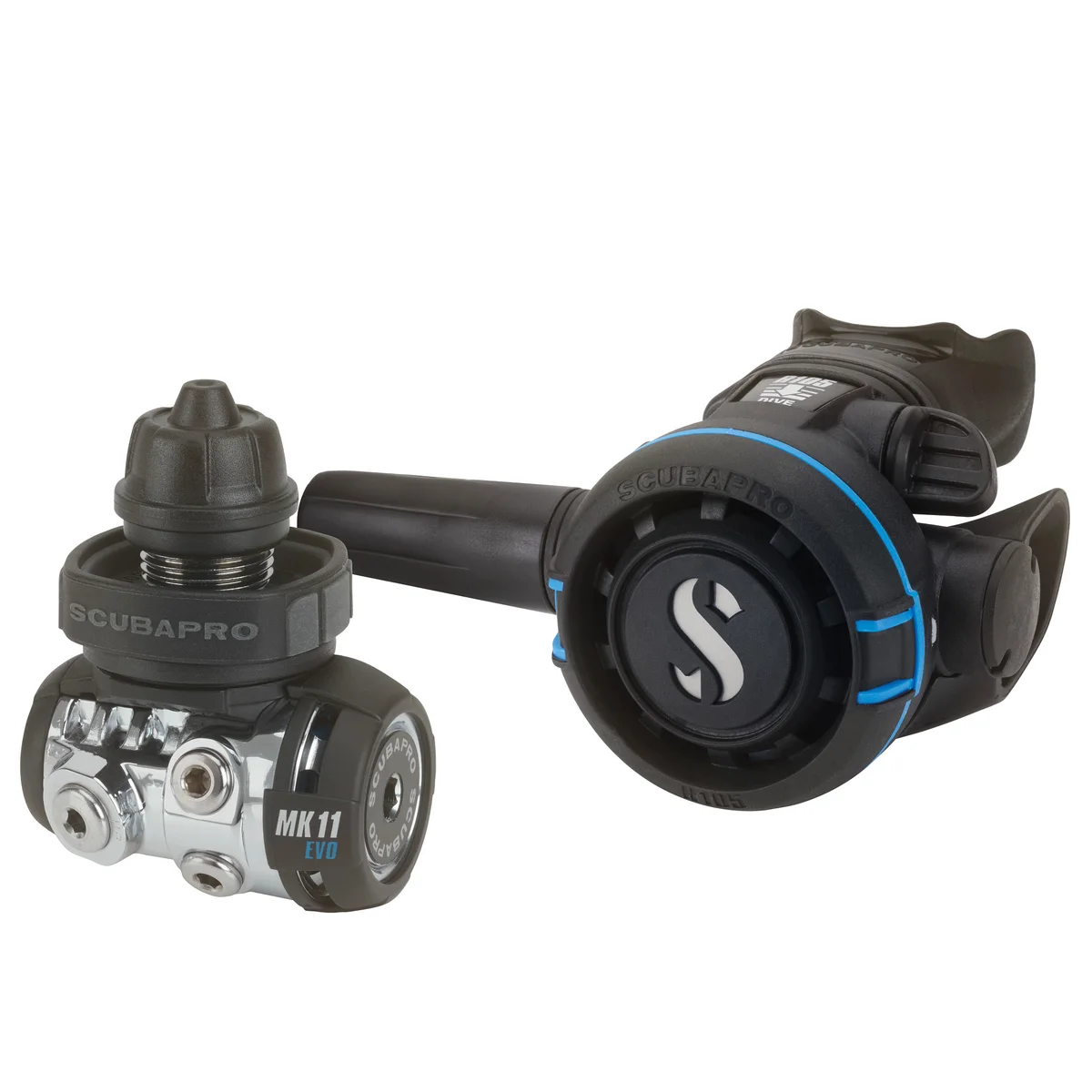 Scubapro MK11 Evo 是一款採用平衡式活塞(Balanced Piston)設計的一級頭,無論潛水深度或氣瓶壓力如何變化,均能提供穩定一致的中間壓力輸出,確保呼吸阻力不會隨深度增加而顯著上升。MK11 Evo 配備多個高壓及低壓接口,方便連接備用八爪魚、乾衣充氣管及電腦錶等配件,靈活應對不同潛水設定。其環境密封設計(Environmentally Sealed)有效阻隔沙粒、鹽分及雜質進入機芯,延長使用壽命,特別適合在能見度較低或沙底環境中潛水。