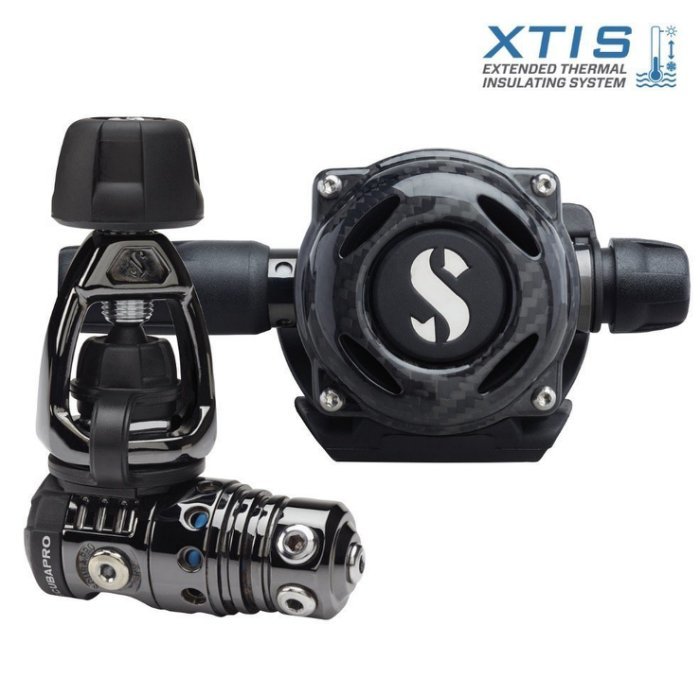 此款調節器具有堅固的手工碳纖維外殼,一級頭與二級頭都使用DLC Black Tech專利塗層,不僅重量上更為輕巧並且非常耐用。 此外,這款調節器擁有全新專利低水溫防結冰溫度絕緣系統Extended Thermal Insulating System (XTIS),即便在冷水中依然能夠發揮絕佳的呼吸性能不會凍結。