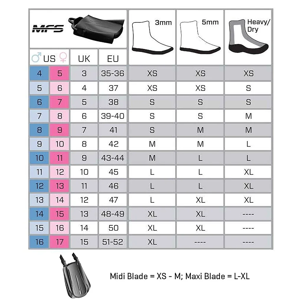 Scubapro S-TEK Fin OH 提供 XS、S、M、L、XL 五個尺碼選擇,選購時需同時考慮您的腳掌尺寸及所配合的潛水靴厚度,因為 Open Heel 調節式蛙鞋通常需要配合潛水靴穿著。建議下單前先確認好適合尺寸,本店不設退換,如有尺寸疑問歡迎事先私訊查詢。