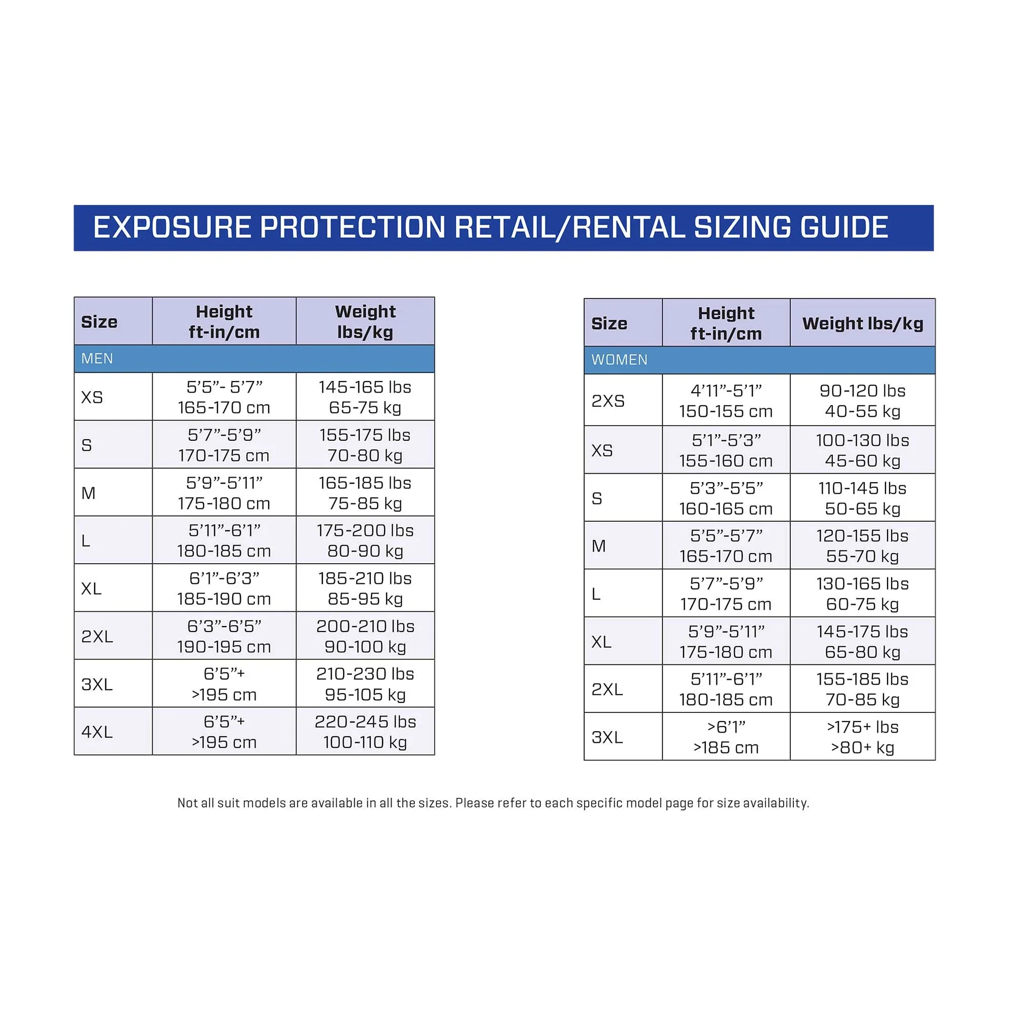 Scubapro Oneflex 3.0mm Men 提供 XS、S、M、L、XL 及 2XL 六個尺碼選擇,建議參考 Scubapro 官方尺碼表,根據身高、體重及胸圍選擇最合適的尺碼。潛水衣應貼身但不過緊,過鬆會令保暖效果下降。由於本店不設退換,如不確定尺碼,歡迎私訊查詢以獲取尺寸建議。