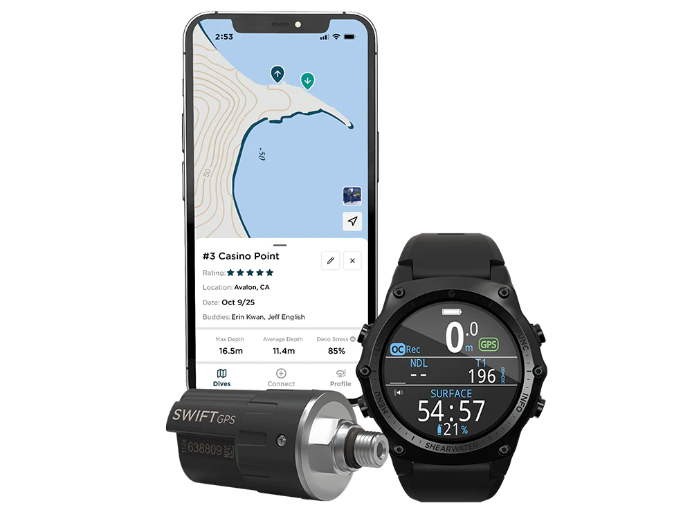 為你的 Shearwater 潛水電腦加上一雙「定位之眼」,讓每一次下潛,都有清楚記錄、可回顧、可分享。