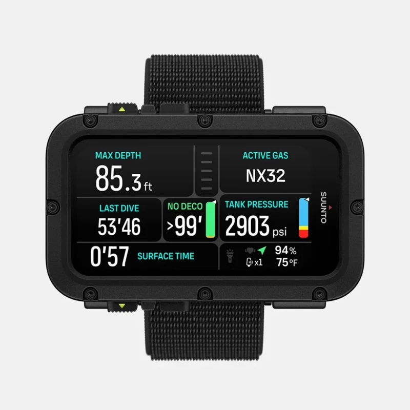 Suunto Nautic 配彈性織物錶帶非常適合休閒水肺潛水員,其清晰的 AMOLED 顯示屏讓初學者及中級潛水員都能輕鬆讀取深度、時間與減壓資訊,配合最長 60 小時的電池續航,足以應對多天潛水旅行。
